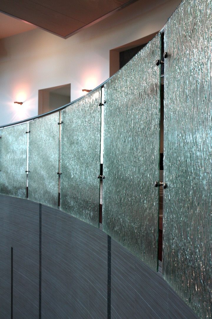 Glass railings installed on stairs and terraces, providing safety without sacrificing design and aesthetics.