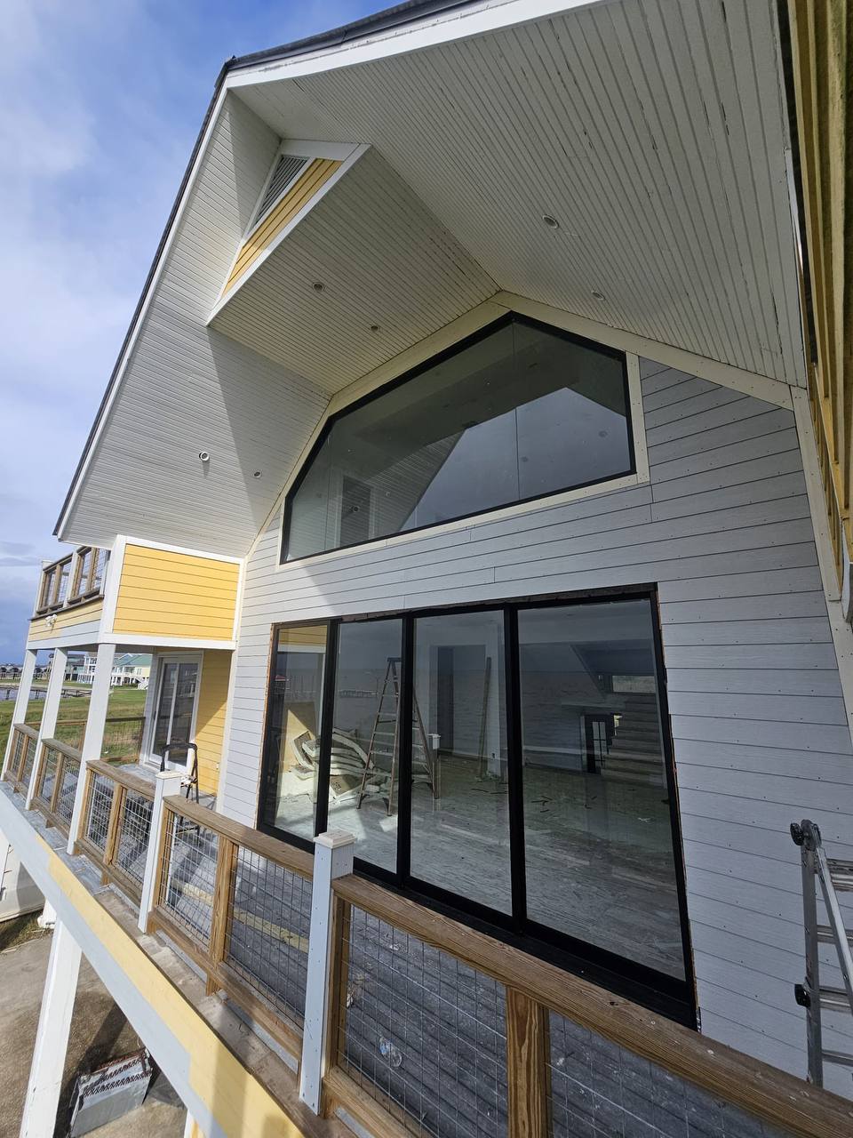 Tempered glass facades on buildings, providing a modern aesthetic and maximum energy efficiency.
