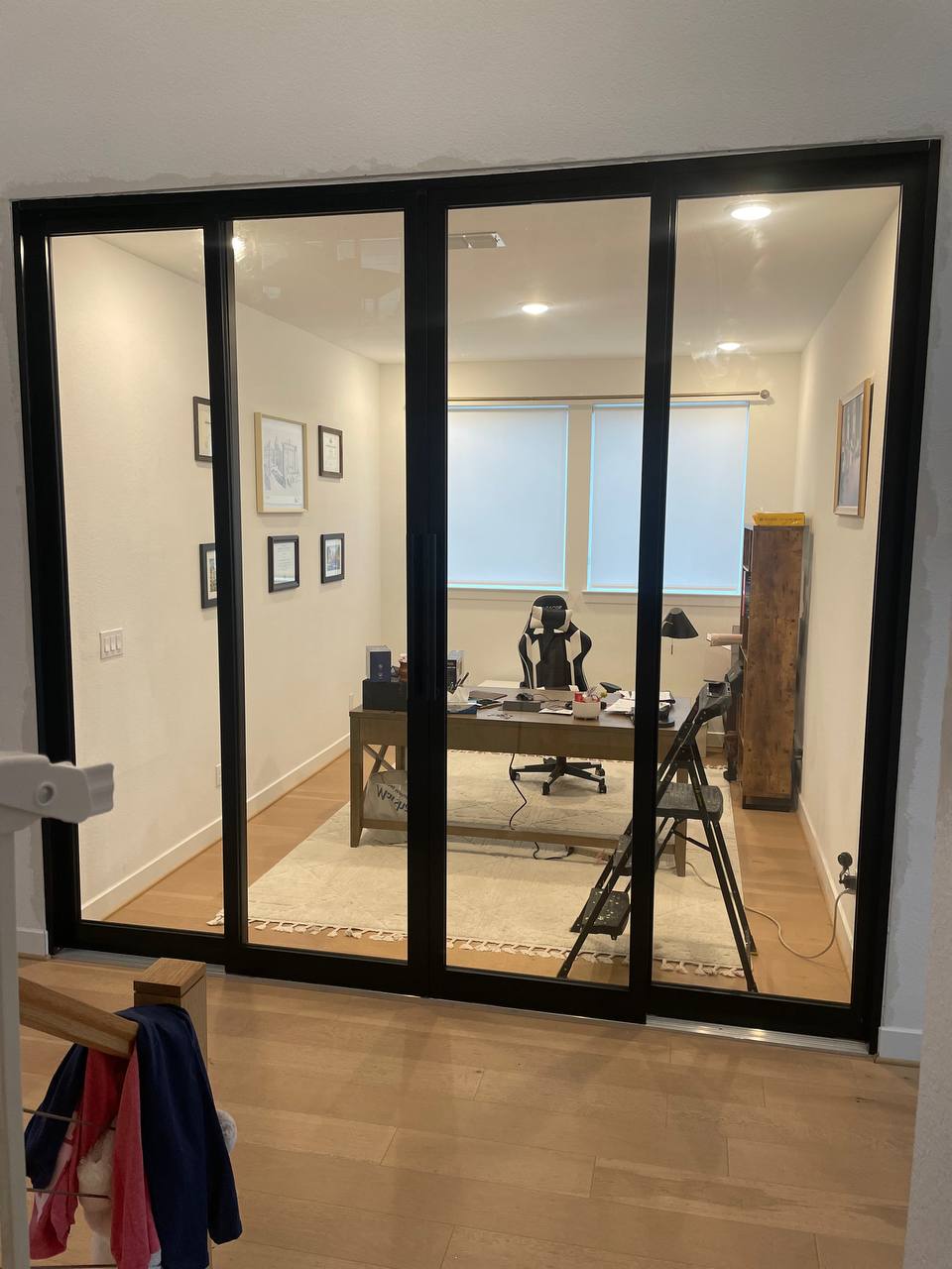 Glass walls in offices and residences, integrating design elements that allow natural light to enter and connect different spaces without sacrificing privacy.